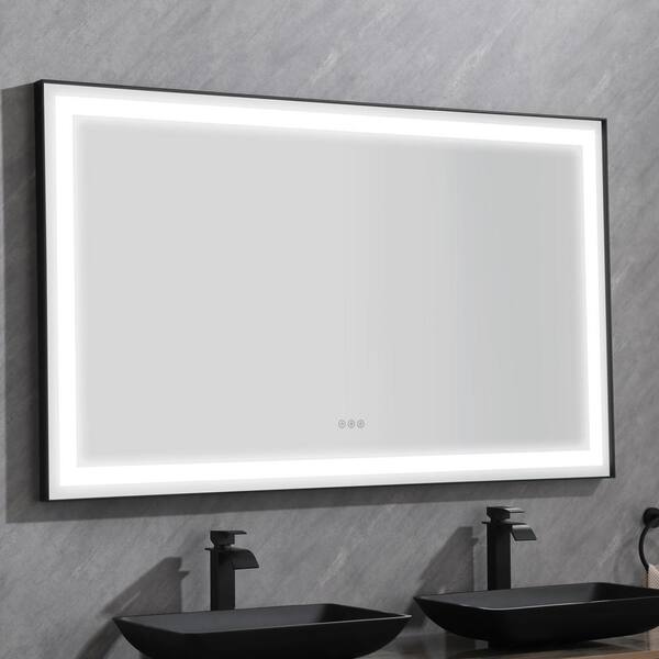 84 in. W x 48 in. H Large Rectangular Aluminium Framed Dimmable Anti-Fog Wall Bathroom Vanity Mirror in Black