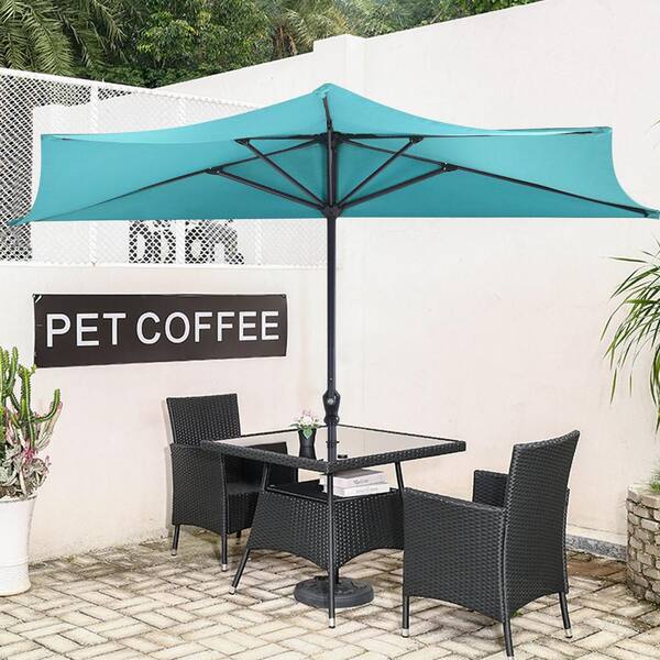 9 ft. Steel Market Half Patio Umbrella in Turquoise