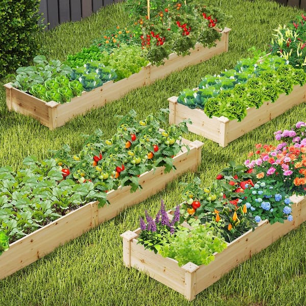 90 in. x 25 in. x 10 in. Natural Solid Wood Raised Garden Bed with 2 Planter Boxes and Dividers