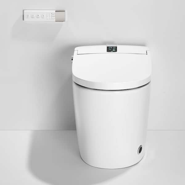 Elongated 12 in. Roungh in. 1.28 GPF Smart Toilet Bidet in White, Auto Flush, Heated Seat, Warm Air Dryer, Foot Sensor