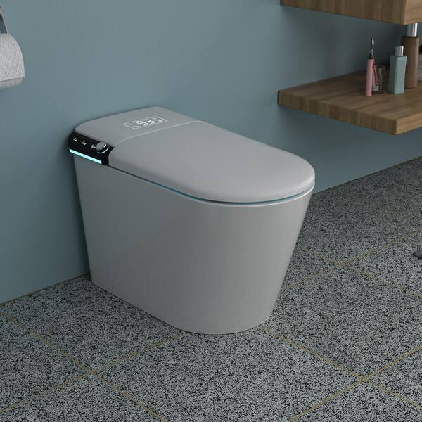 Elongated Bidet Toilet 1.28 GPF in White with Foot Sensor Open Cover, Auto Flushing, Color Light, Massage Washing
