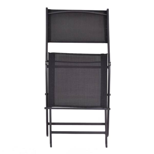 Folding Outdoor Dining Chair in Black with Text Ilene Fabric, Black Steel Frame for Outdoor and Indoor Use Set of 4