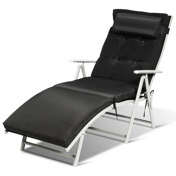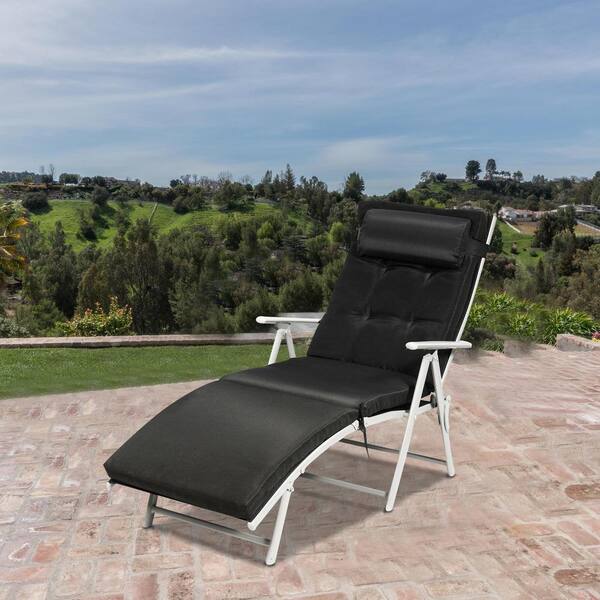 Metal Outdoor Adjustable Lightweight Folding Chaise Lounge with Cushions, Pillow, Black