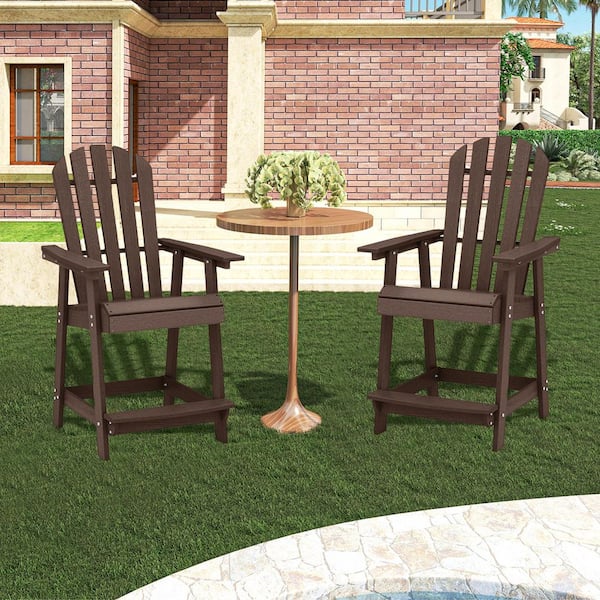 Plastic HDPE Outdoor Bar Stool in Brown with Armrests and Footrests-Weather-Resistant for Patios, Bars, and Cafes