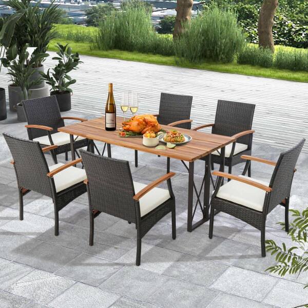 Wicker Mix Brown Outdoor Dining Chair with Soft Zippered Off White Cushion (2-Pack)