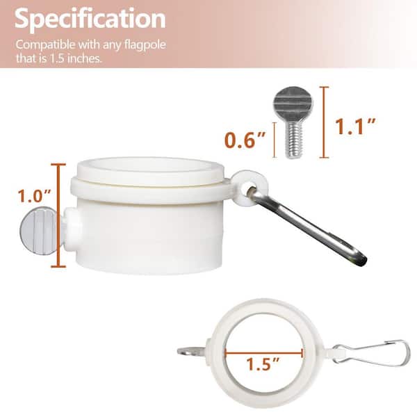 1.5 in. Plastic Flagpole Mounting Rings Set - Ideal for 1.5 Inch Maximum Diameter Flag Pole (White, Pack of 2)
