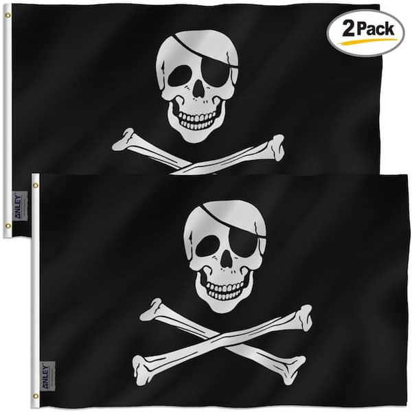 Fly Breeze 3 ft. x 5 ft. Polyester Jolly Roger Flag with Patch 2-Sided FlagS Banner with Brass Grommets (2-Pack)
