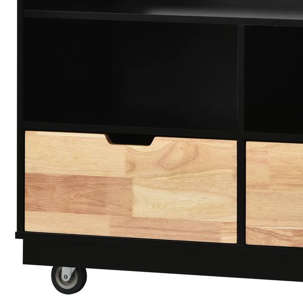Black Kitchen Cart with Drawers and Locking Casters and Wheels and two drawers and spice rack and wine rack