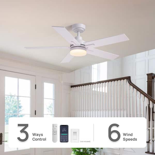 44 in. Modern Smart Indoor White Ceiling Fan with Dimmable LED Light and APP Remote Control