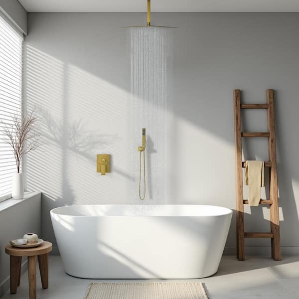 10 in. 2-Jet High-Pressure Rainfall Bathroom Shower System in Matte Gold with Square Head and Handheld Shower