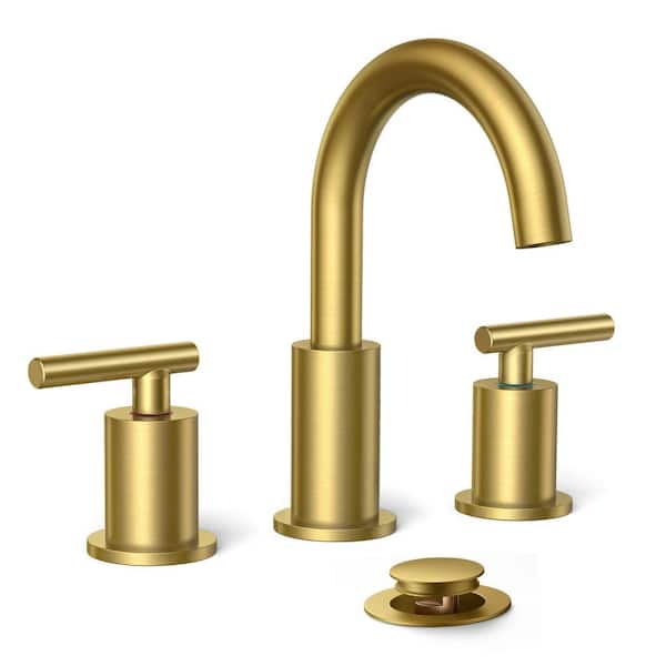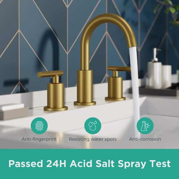 8 in. Widespread Double Handle Bathroom Faucet with Ceramic Disc Valve in Brushed Gold