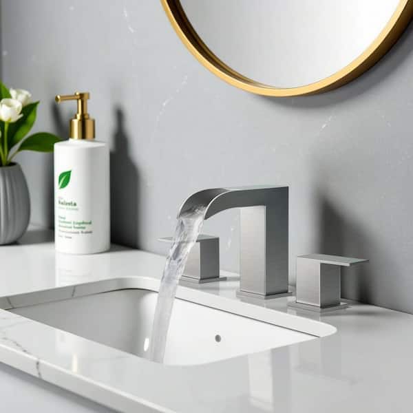 8 in. Widespread Double Handle Bathroom Faucet with Drip-Free 1.5 GPM Waterfall Design in Brushed Nickel
