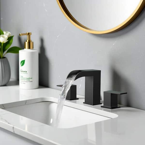 8 in. Widespread Double Handle Bathroom Faucet with Drip-Free Ceramic Disc Valve 1.5 GPM Waterfall Design in Black