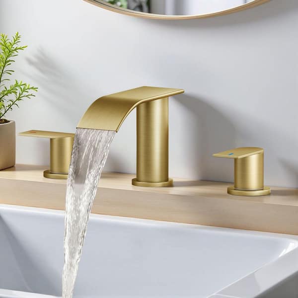 8 in. Widespread Double Handle Bathroom Faucet with Pop-Up Drain in Gold