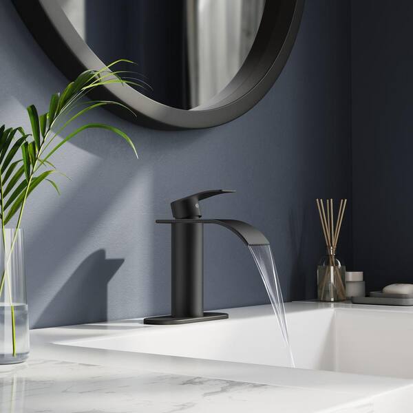 Single-Handle Bathroom Faucet with Deckplate Included and Spot Resistant in Matte Black