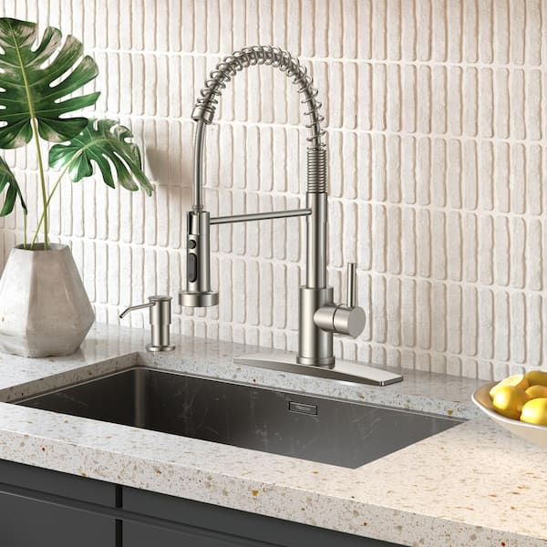 Single-Handle Pull Down Sprayer Kitchen Faucet with Soap Dispenser in Chrome