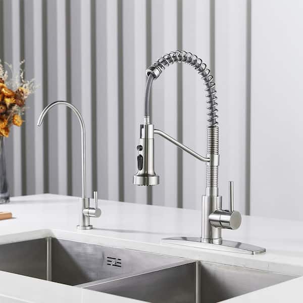 Single Handle Pull Down Sprayer Kitchen Faucet with Spring Neck in Brushed Nickel