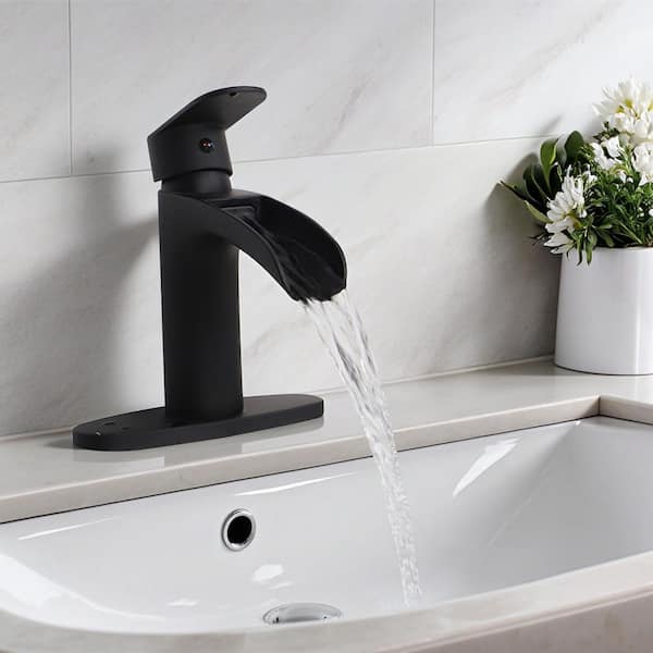 Single Handle Single Hole Bathroom Waterfall Faucet with Waterfall in Black (Drain kit not included)