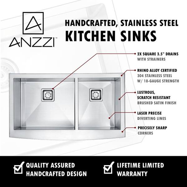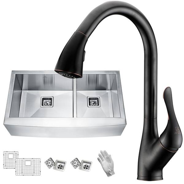 Elysian Farmhouse Stainless Steel 36 in. 60/40 Double Bowl Kitchen Sink with Faucet in Oil Rubbed Bronze