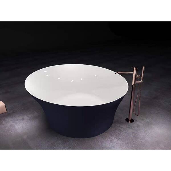 Lacrima Series 67 in. x 33 in. Flat Bottom Acrylic Freestanding Soaking Bathtub with Center Drain in Navy Blue