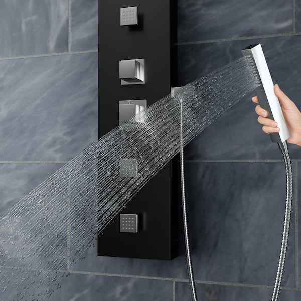 Monsoon 57 in. 4-Jetted Full Body Shower Panel System with Heavy Rain Shower, Spray Wand, in Matte Black