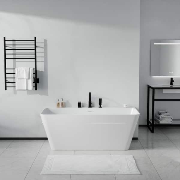Vault Series 59 in. x 30 in. Flat Bottom Acrylic Freestanding Soaking Bathtub with Center Drain, Matte Black Faucet