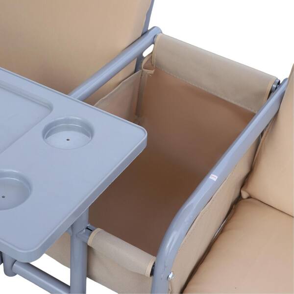 2-Person Porch Swing with Stand, Outdoor Swing with Canopy, Pivot Storage Table, 2-Cup Holders, Cushions for Patio.