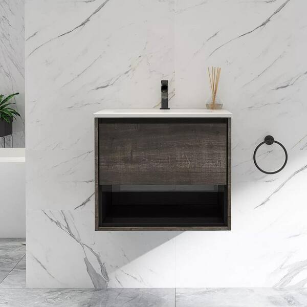 24 in. W x 18 in. D x 20 in. H Floating Bath Vanity in Brown with White Ceramic Top Single Sink