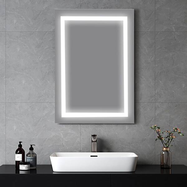24 in. W x 36 in. H Large Rectangular Frameless Led Light Wall Bathroom Vanity Mirror in Silver