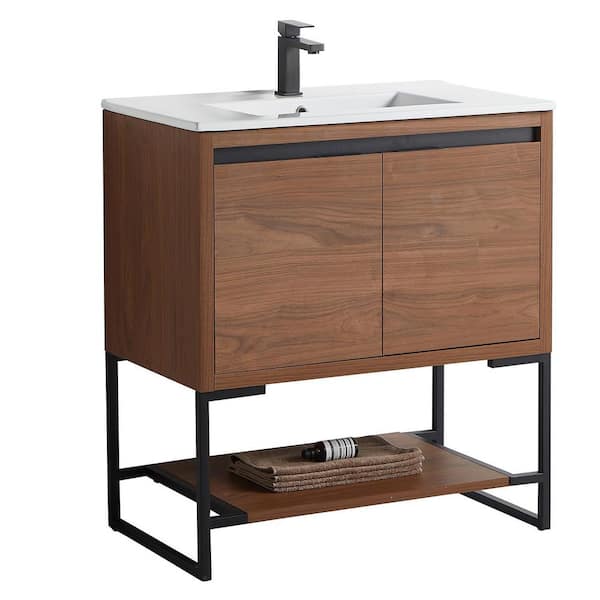 30 in. W x 18 in. D x 34.25 in. H Bath Vanity in Dark Brown Wood Grain with White Ceramic Top