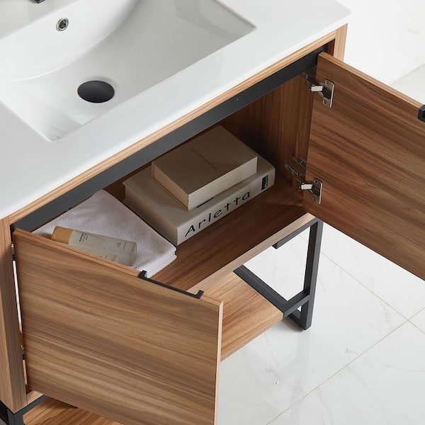 36 in. W x 18 in. D x 34.25 in. H Freestanding Bath Vanity in Brown Wood Grain with White Ceramic Top