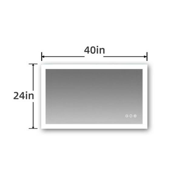 40 in. W x 24 in. H Large Rectangular Frameless LED Light Wall Bathroom Vanity Mirror in Silver