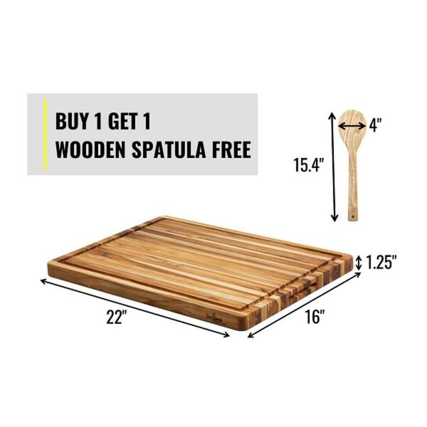 5-Piece 22 in. Natural Brown Teak Rectangular Cutting Board Set with Juice Groove