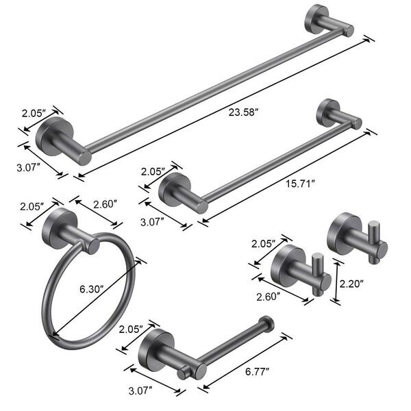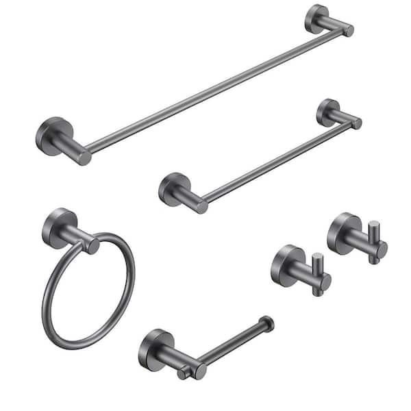 6-Piece Bath Hardware Set with Hand Towel Bar, Hooks, Toilet Paper Holder and Towel Ring in Grey