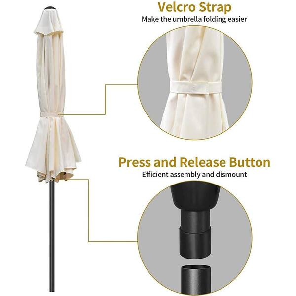 9 ft. Outdoor Market Beige Canopy Patio Umbrella with Button Tilt