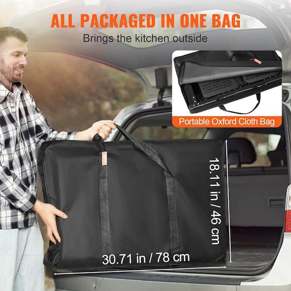 Camping Kitchen Table, 1-piece Folding Portable Cook Station with A Carrying Bag, Aluminum Camping Table 4-Iron Side,