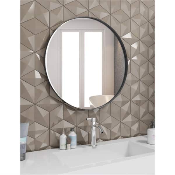 Glimmer 32 in. W x 32 in. H Small Round Magnifying Wall Bathroom Makeup Mirror in Matte Black