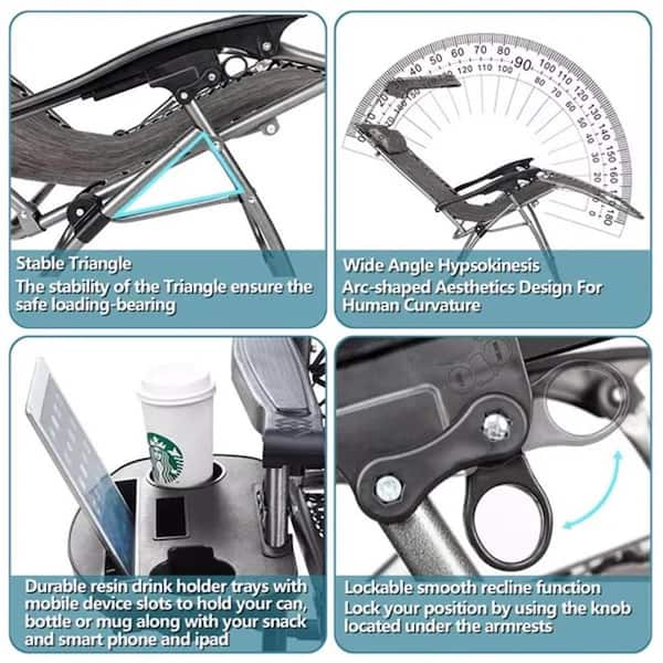 Infinity Zero Gravity Chair with Awning Outdoor Lounge Patio Chairs for Deck, Patio, Beach, Yard, Grey