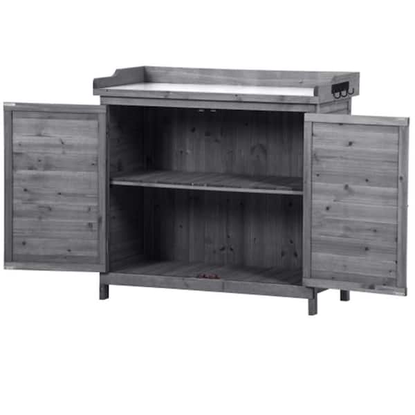 Outdoor 39 in. Potting Bench Table, Storage Cabinet Garden Shed with 2-Tier Shelves and Side Hook, Grey