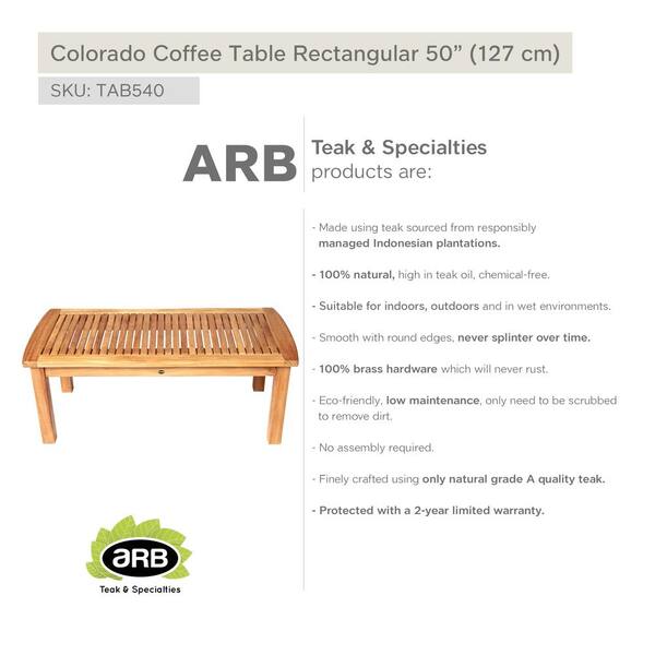 Colorado 50 in. x 24 in. Rectangular Natural Teak Outdoor Coffee Table