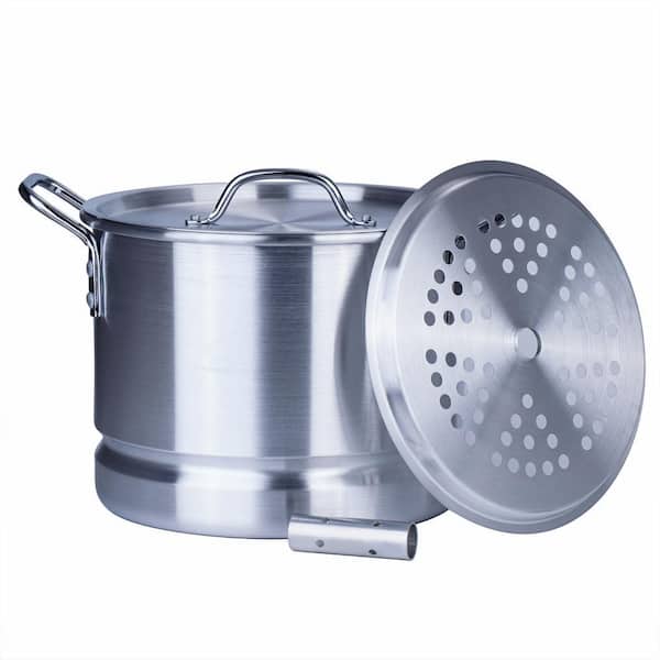 32 qt. Aluminum Tamale Steamer Pot, Boiler Pot w/ Steamer Rack and Tube, Rivet Handle, 8 gal.