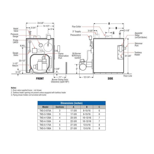 Tracker 85.1% AFUE 5-Section Heating Oil Steam Boiler with 266,000 BTU Input, 230,000 BTU Capacity