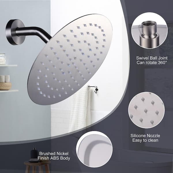 1-Spray Pattern 1.8 GPM 12 in. Single Wall Mount Rain Fixed Shower Head in Brushed Nickel