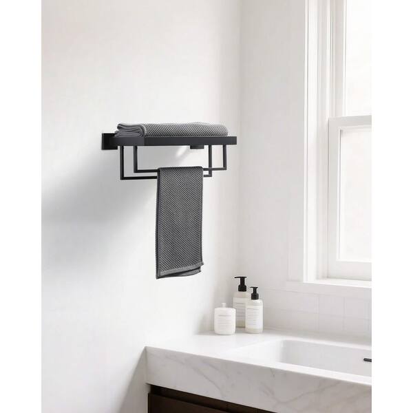 16 in. Square Single Towel Rack Holders Wall Mounted in Matte Black