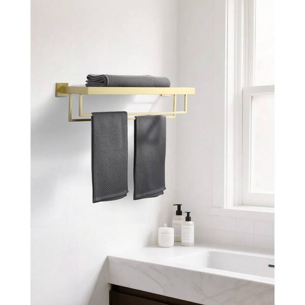 24 in. Square Single Towel Rack Holders Wall Mounted in Brushed Gold
