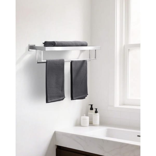 24 in. Square Single Towel Rack Holders Wall Mounted in Brushed Nickel
