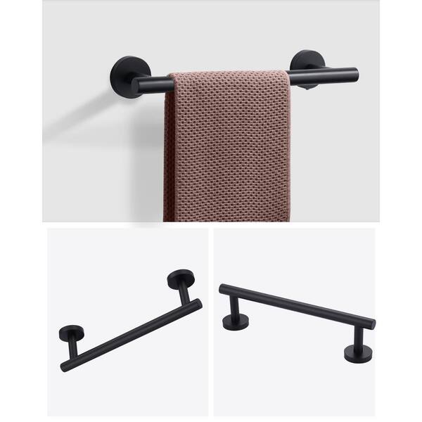 3-Piece Stainless Steel Bath Hardware Set with Towel Hook Toilet Paper Holder and Towel Bar in Matte Black