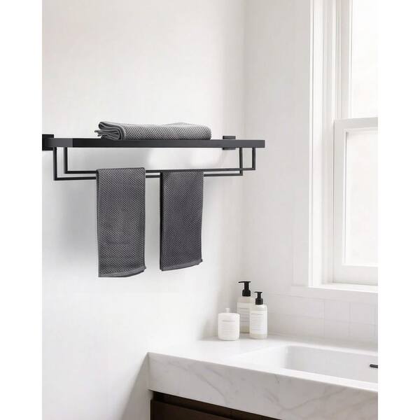 32 in. Square Single Towel Rack Holders Wall Mounted in Matte Black