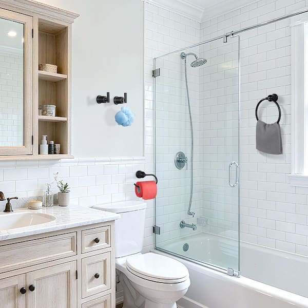 4-Piece Bath Hardware Set with Toilet Paper Holder, Towel Ring and Towel Hook Included in Matte Black