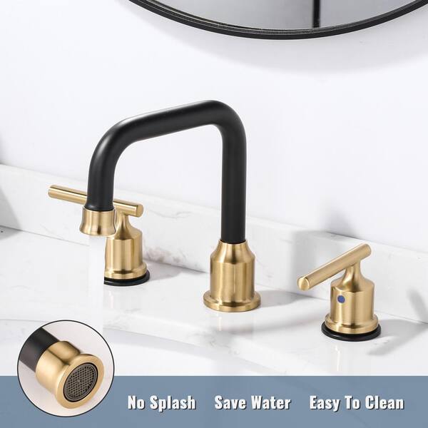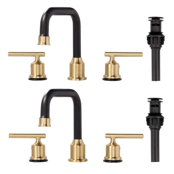 8 in. Widespread 2-Handle Bathroom Faucet with Pop Up Drain, 3 Hole Bathroom Sink Faucet in Black and Gold (2 Pack)